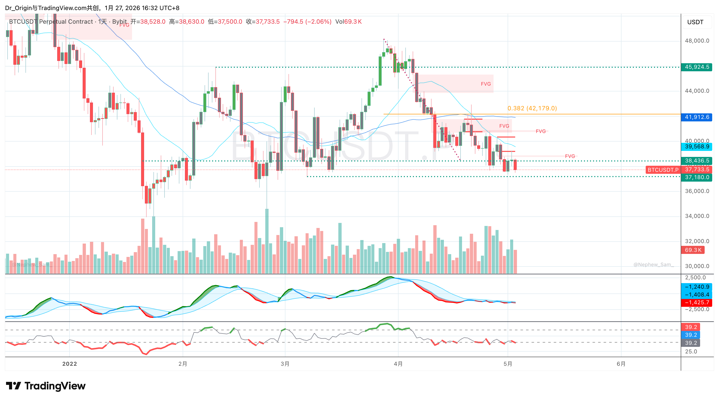 Large players did not accumulate. They used the rebound to exit longs and establish shorts, feeding on the liquidity provided by optimistic buyers. Once price broke below the $37,000 consolidation zone, a stop cascade followed, culminating in the Terra collapse and a BTC low near $17,000.