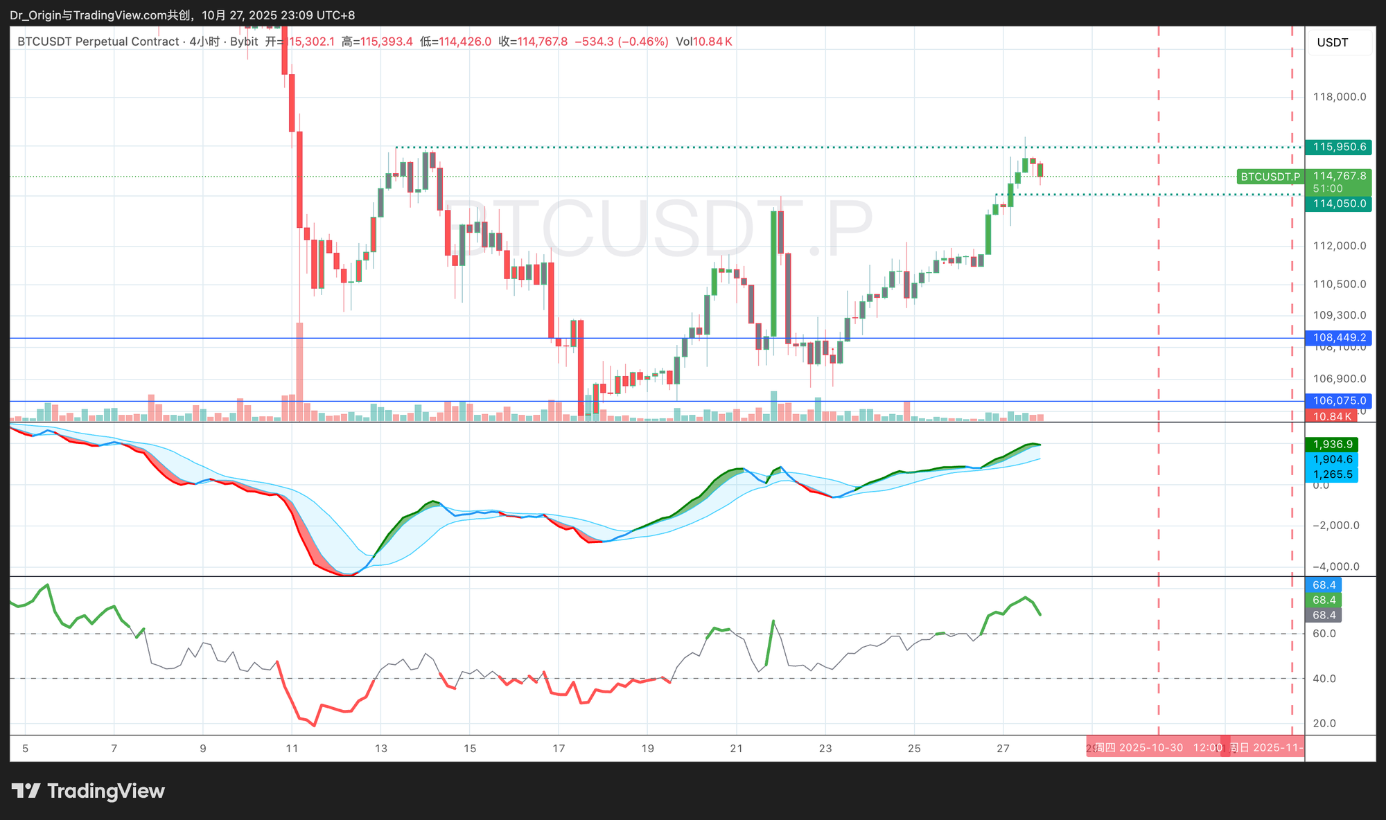 We must remain hyper-vigilant for a secondary false breakout. In the game of manipulation, a higher, more deceptive spike (e.g., a thrust toward $117,000 or even higher) would be the "master stroke" of this operation. Such a move would be designed to surgically liquidate the more sophisticated traders who correctly identified the first spike as false and have already entered short positions. The operator (the "Composite Man") possesses a near-perfect map of liquidity; they know where all the stop-loss clusters are. This first false breakout has actively revealed a part of their hand.