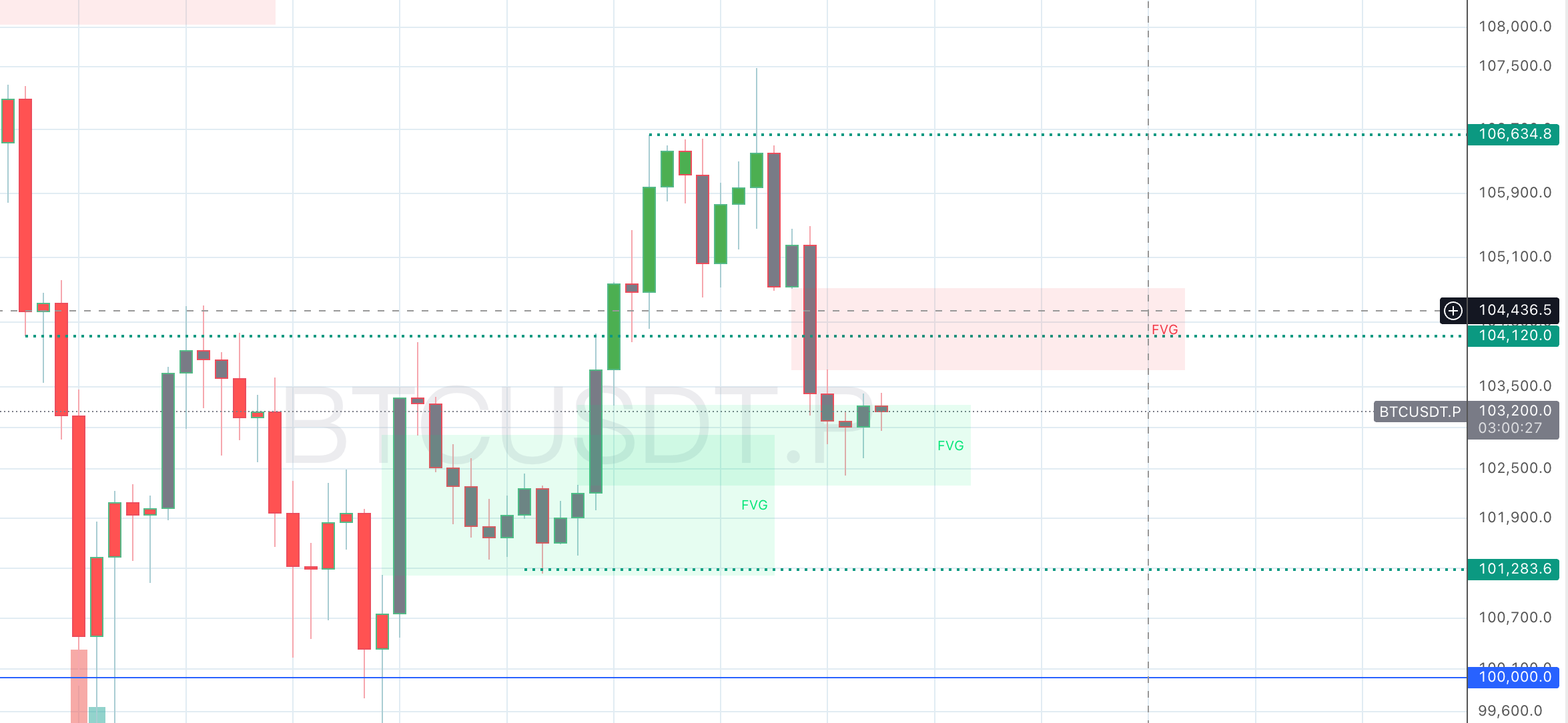 Our Advice: Short the $104,000 trap, as we did not expect price to reach $107,000.